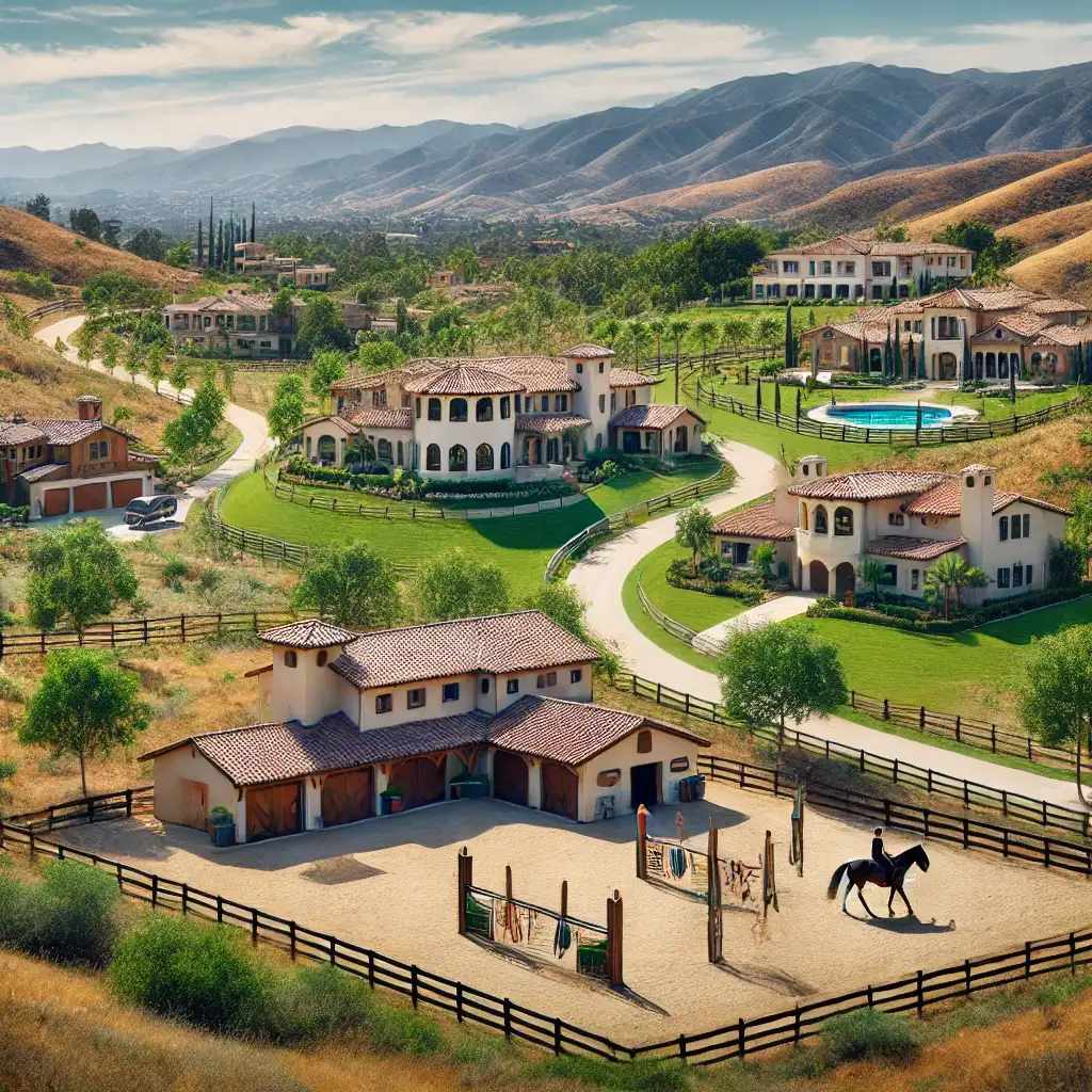 This picturesque neighborhood offers a rural yet upscale environment, perfect for those who love nature but don't want to compromise on luxury. Mission Hills Ranch is a gated equestrian community with private stables and riding facilities, making it popular among horse owners. The homes are beautifully designed, with large lots that provide space for lush landscaping and outdoor amenities like pools and guest houses.